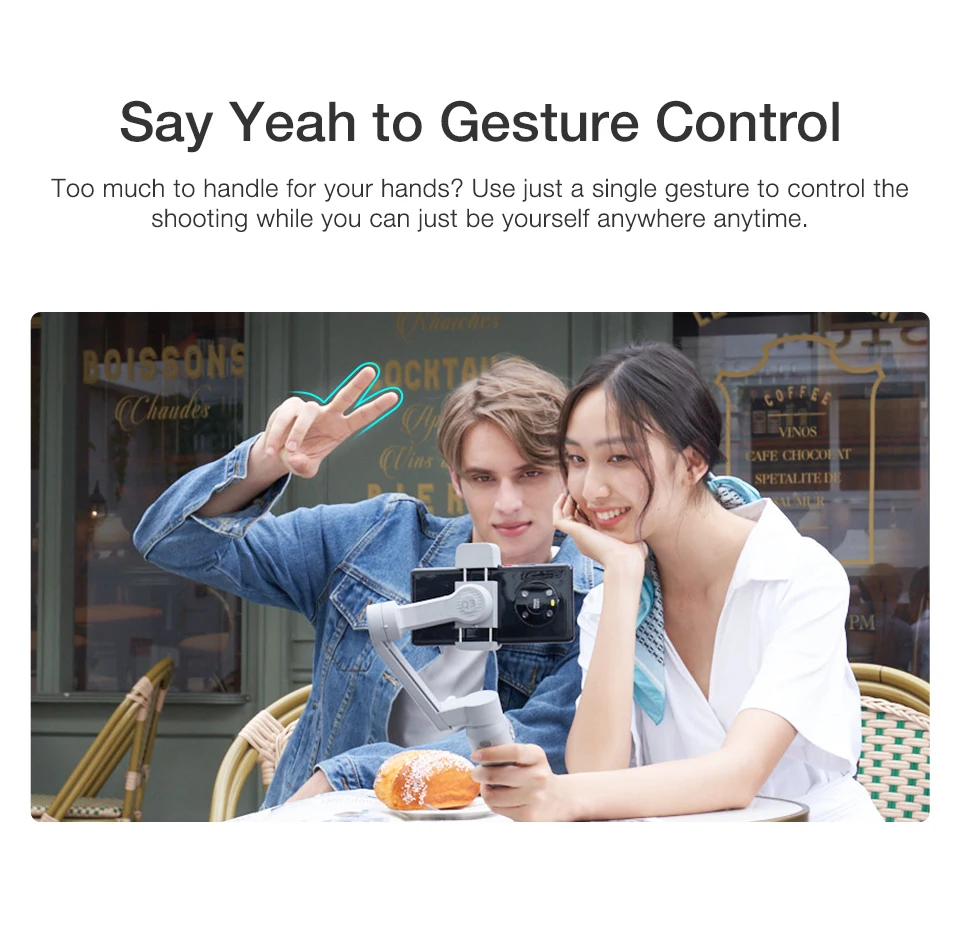 [SmartFollow 3.0 e Controle por Gestos]: Mantenha-se sempre no centro das atenções. Ative o SmartFollow 3.0 com apenas um toque através do aplicativo. Use apenas um gesto para controlar a captura. Disponível em vários modos panorâmicos.