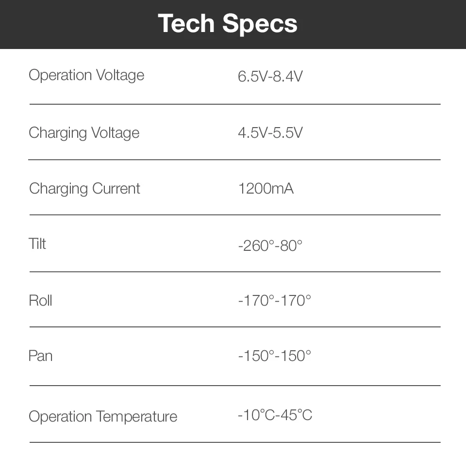[Leve e Potente]: O Q3 suave pesa apenas 340 g e suporta dispositivos de até 280 g. O design elegante e dobrável permite que seja levado para qualquer lugar. A bateria interna de 1500 mAh pode durar até 10 horas. Perfeito para vloggers e criadores de conteúdo.